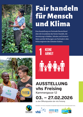 Fairtrade Deutschland e.V. ist ein gemeinnütziger Verein, der KonsumentInnen, Unternehmen und Produzentenorganisationen miteinander verbindet. Fairtrade verändert Handel(n). In dieser Ausstellung mit eindrucksvollen Fotos können Sie sich über die Grundsätze des Fairen Handels, die Vernetzung in Städten, Schulen und Universitäten und die Wirkungen von Fairtrade in den Anbauregionen des globalen Südens informieren. Zudem erfahren Sie, wie die Bäuerinnen und Bauern darin unterstützt werden, sich dem Klimawandel anzupassen, das Klima zu schützen und widerstandsfähiger zu werden.